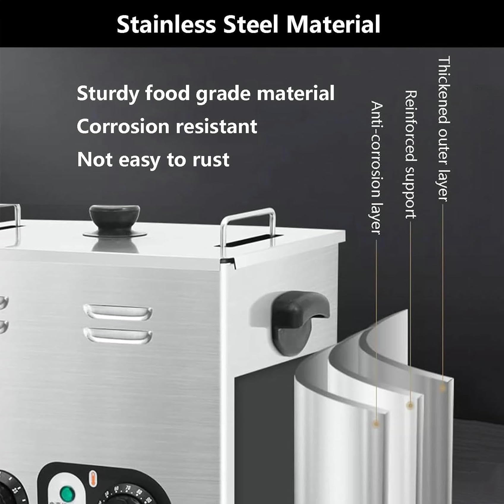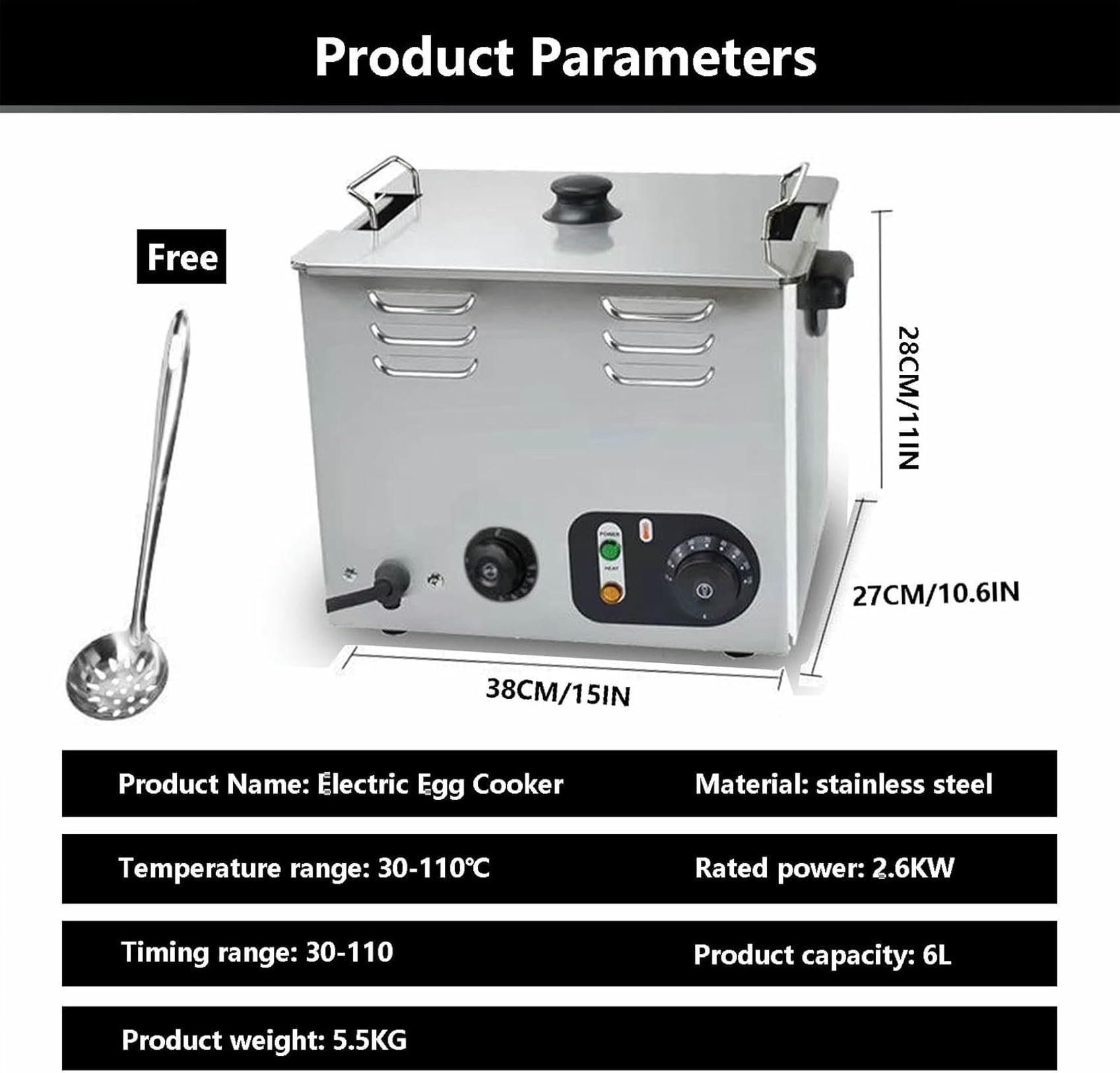 - 【Tiempo y temperatura ajustables】El cocedor de huevos de resorte caliente está fabricado en acero inoxidable, lo que garantiza un rendimiento duradero en entornos comerciales. La máquina también ofrece un rango de ajuste de temperatura de 30 a 110 °C y una función de temporizador, lo que le permite personalizar el proceso de cocción según sus preferencias.
