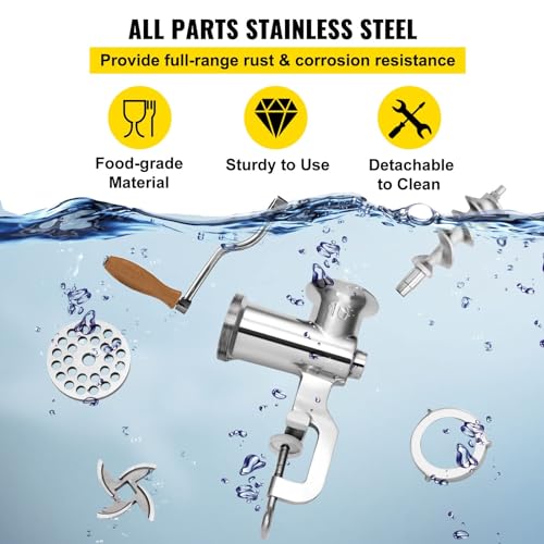 - 【Acero inoxidable de grado alimenticio: seguro y duradero】 Craftado por completo a partir de acero inoxidable de grado alimenticio, este molinillo de carne manual resiste el óxido y la corrosión mientras cuenta con un aspecto elegante. Asegura que la preparación de alimentos higiénicos, sin sustancias dañinas se lixivie en sus ingredientes, mientras reduce los costos de mantenimiento a largo plazo. Perfecto para cocineros conscientes de la salud que priorizan la seguridad sin sacrificar la durabilidad.