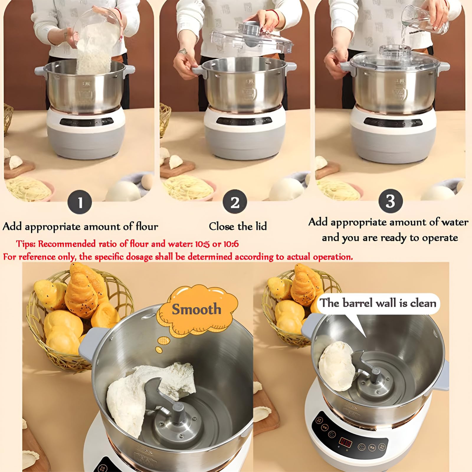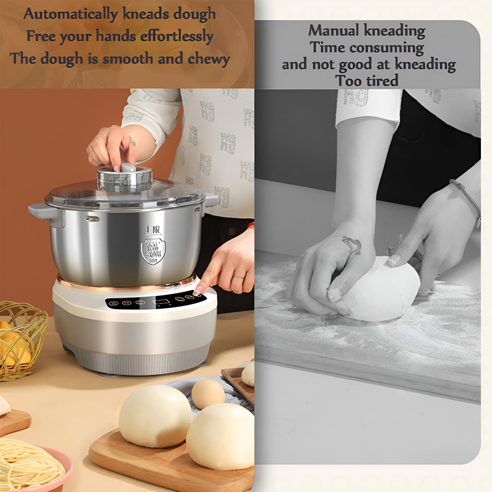- Inteligente y práctica: controlada por una microcomputadora, la máquina amasadora eléctrica proporciona un amasado inteligente y un aumento constante de la temperatura simultáneamente, simulando automáticamente la mezcla natural de la masa. Disfrute de una masa masticable y bien amasada sin esfuerzo ni tiempo extra, haciendo que su experiencia de horneado sea eficiente y agradable.