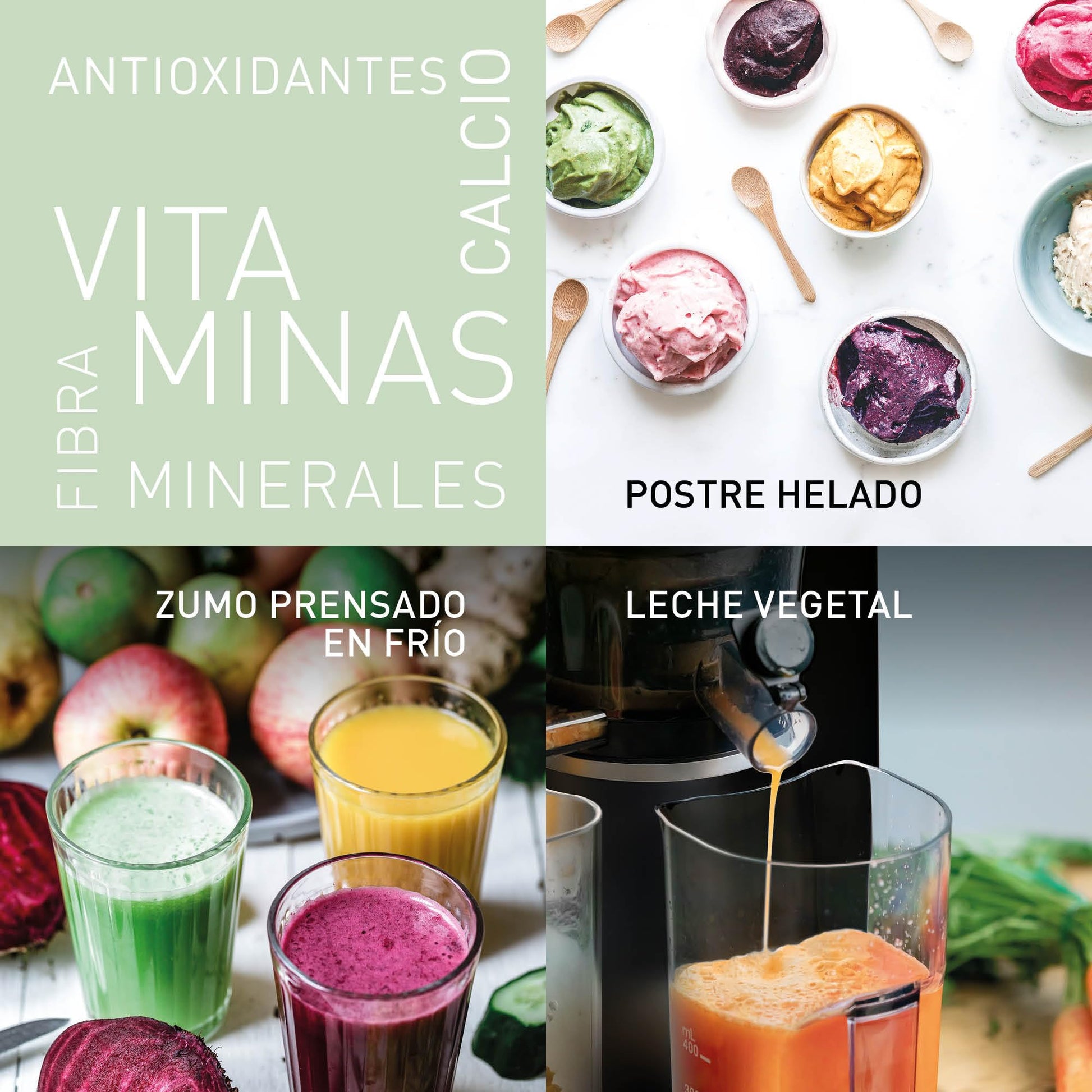 - JUGOS FRESCOS Y POSTRES CONGELADOS: Este exprimidor lento no solo hace jugos deliciosos, sino que también viene con un accesorio para ingredientes congelados para que pueda preparar fácilmente postres saludables como sorbetes y yogur helado